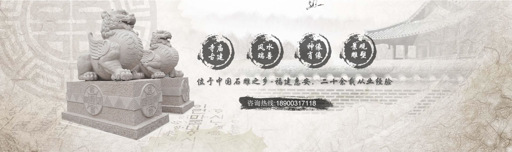 福建省九龍星園林古建有限公司坐落于著名的“中國石雕之都”福建省惠安縣,是一家集石材創作、加工、安裝、銷售于一體的石材石雕專業生產企業。在石雕牌坊的生產加工上有豐富的經驗及優勢,擁有寬大的廠房、優質的礦產資源、工藝精湛的雕刻師、工程師及強大的管理團隊,多年來精心打造無數經典工程,產品暢銷東南亞、歐美市場及許多國內工程,深受海內外客商及業內人士的青睞與好評。公司主導經營:園林古建筑工程、園林景觀工程、 ...